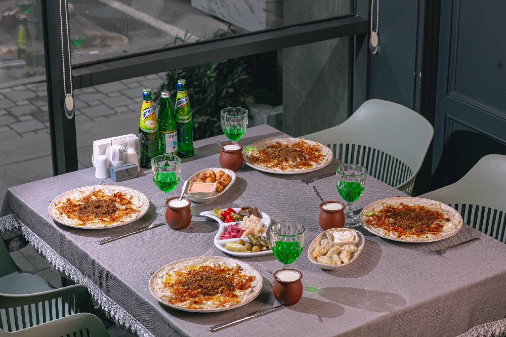 Xəmir, mal əti, gürcü ədviyyatları, sumax