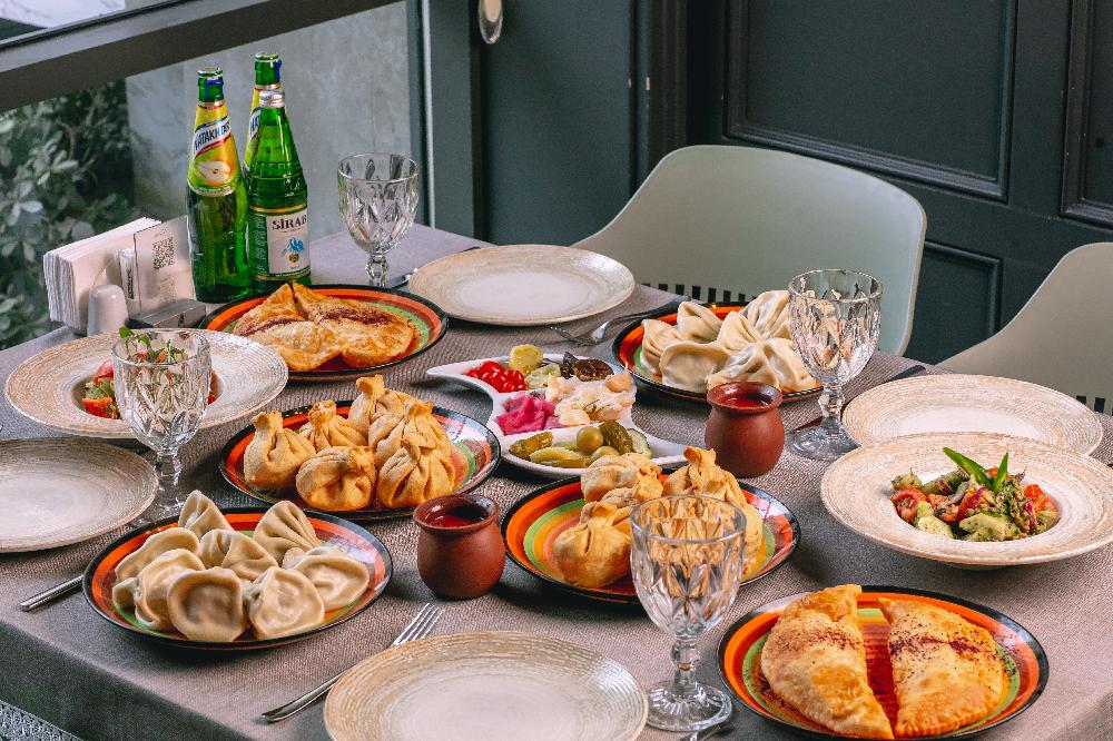 Donuz əti, tkemalı, ajika, bitki yağı, kərə yağı, gürcü ədviyyatları, yağ, pomidor, kartof fri, svan duzu, lavaş